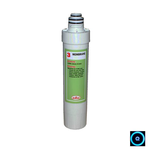 A membrán a víztisztító készülék „lelke”. A félig áteresztő membrán olyan szűrő, melynek nyílása 0,0001 mikron, a baktériumok nagyságrendjénél 1000-szer, a vírusokénál pedig 100-szor kisebbek, így azok a szűrőn nem tudnak áthatolni, visszamaradnak és a lefolyón keresztül eltávoznak az ivóvízből.