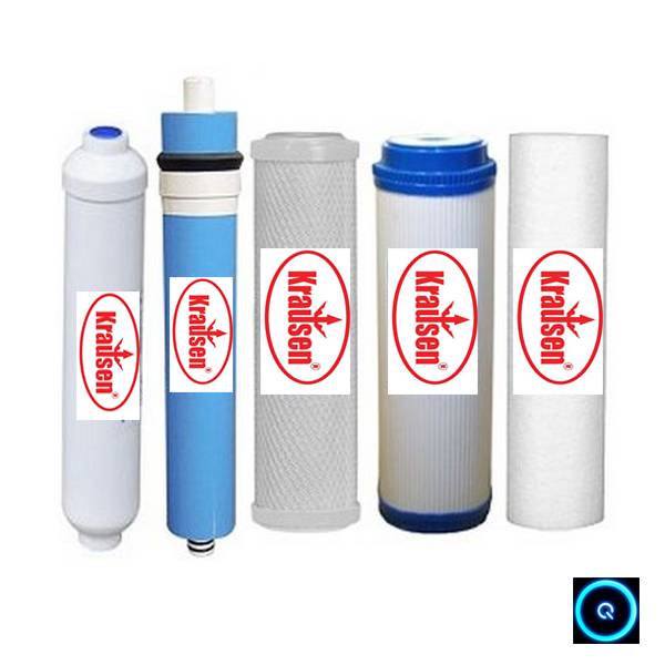 Klasszikus tartályos fordított ozmózis rendszerű víztisztítóhoz alkalmas szűrőbetét készlet.